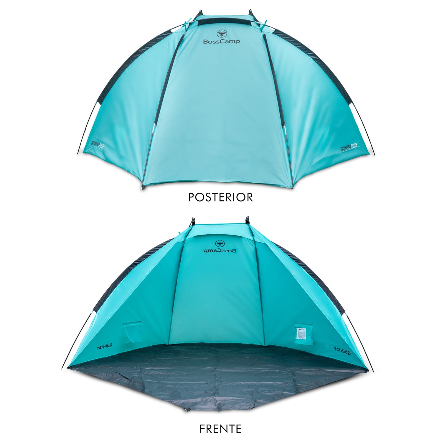 BossCamp desarrolló esta increíble Carpa de Playa / Paraviento tipo Refugio, liviana y fácil de armar. La carpa brinda protección contra el sol (UV 50+), la lluvia y el viento.