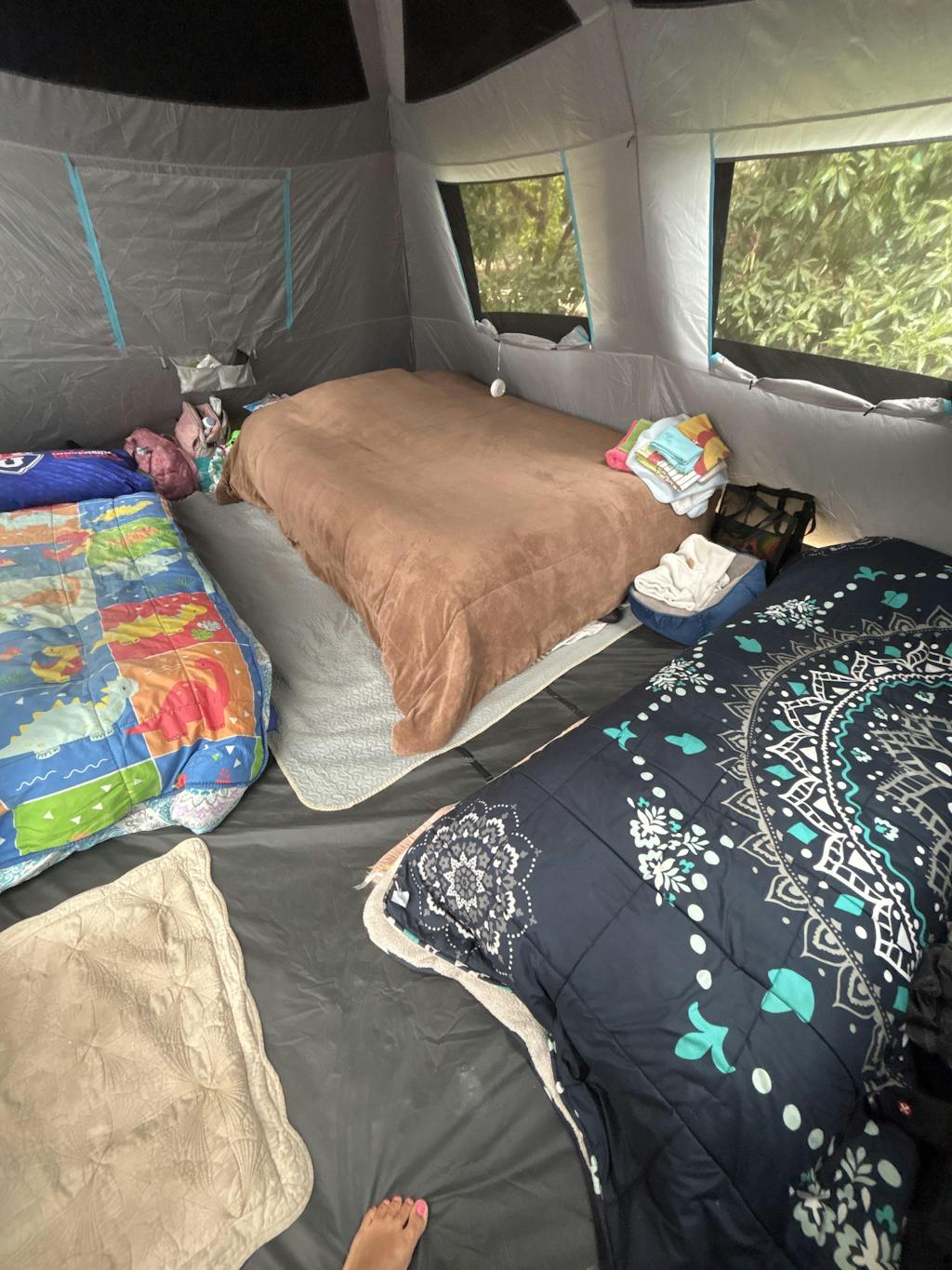 Nos encantó!, además de linda es muy cómoda, cumple con lo descrito. No se pasa la luz, el calor, el frío, la primera lluvia (no más de 1 hora) la paso sin problemas. Respecto al espacio, nosotros somos 5, dos adultos, un niño, un bebé y una mascota, pusimos un colchón queen y dos de 1 plaza, más la cama del perrito, quedó espacio para 5 bolsos y pasillos para moverse cómodamente. Tiene buena ventilación, buena altura, mi marido mide 1.84. Muy contentos con la compra, recomendada.