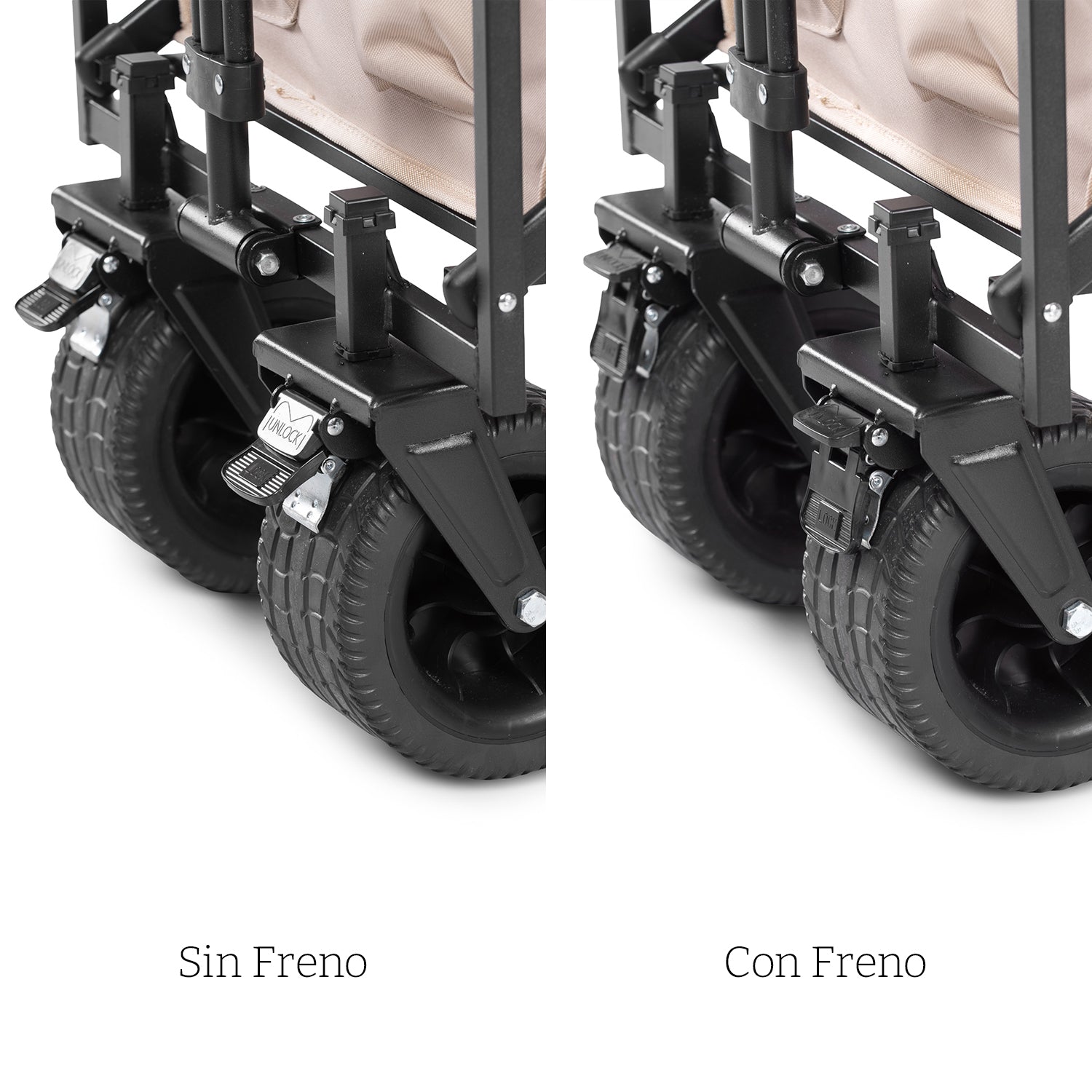 Las ruedas todo terreno de gran tamaño (7”) se adaptan a arena, pasto, grava o caminos irregulares, dándote una tracción suave y estable. Y cuando no lo uses, se pliega en segundos para guardarlo en el maletero o un rincón de tu casa sin ocupar espacio.