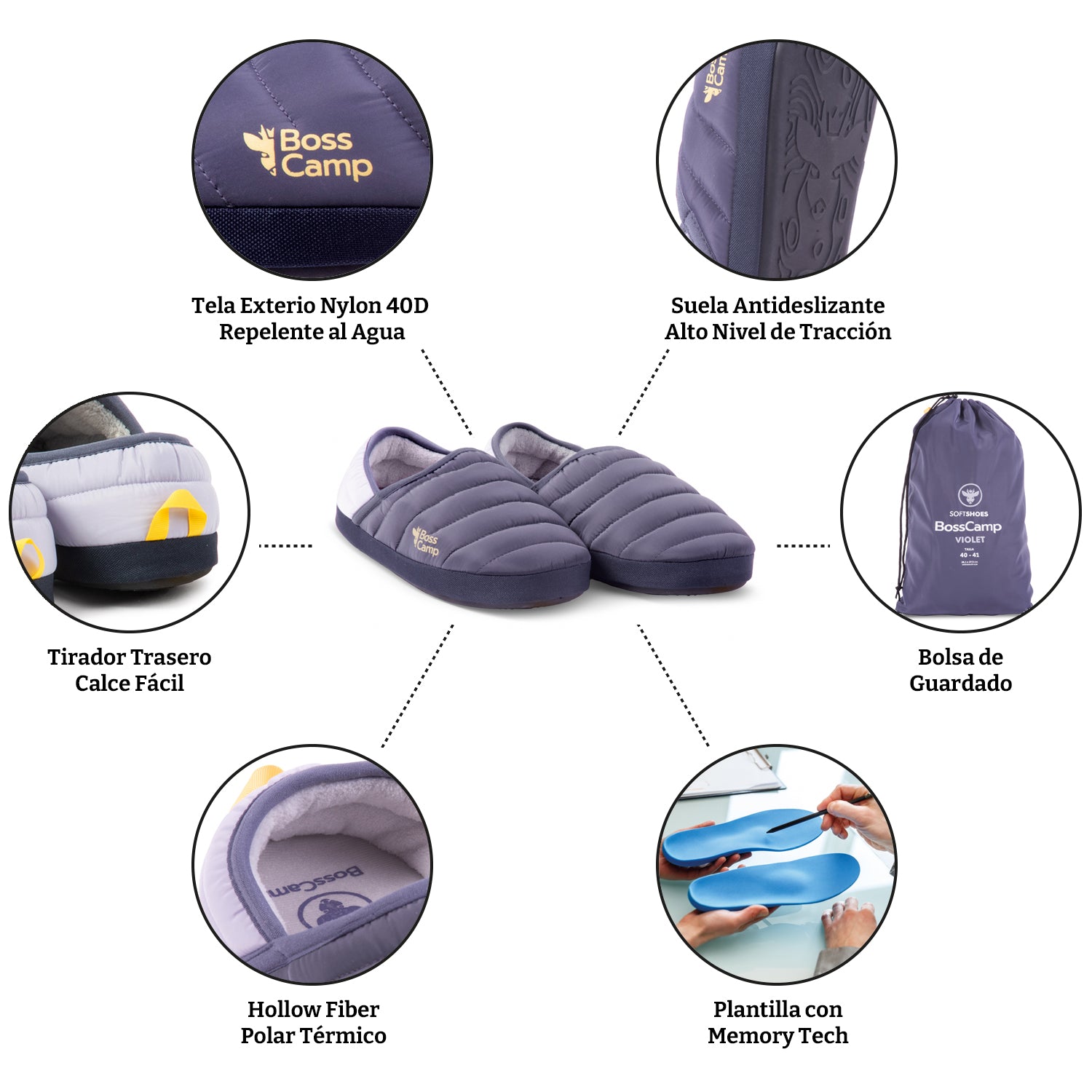 Después del trabajo, tras una larga caminata o en un día de camping… las Pantuflas Quintay SoftShoes de BossCamp te esperan como un abrazo cálido para tus pies. Con su tecnología Memory Tech, su interior ultra suave de micropolar y su suela con gran agarre, están diseñadas para transformar tu descanso en una experiencia reconfortante. Ya sea en casa, en la oficina o en plena naturaleza, son el premio perfecto para terminar bien el día.